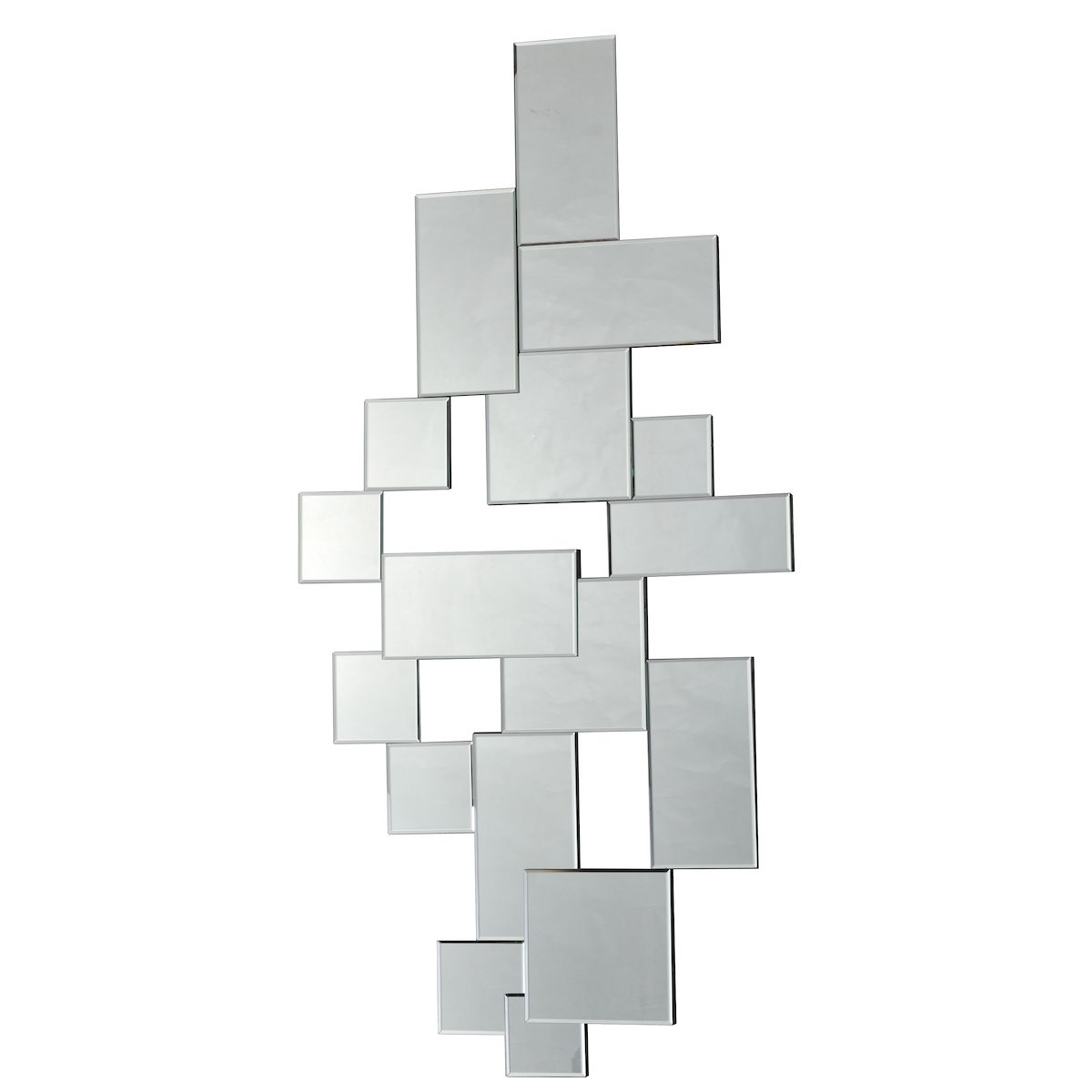 The Block Rectangular Mirror features an overlapping cluster of edged mirrored shapes that form to create a striking decorative rectangle mirror.