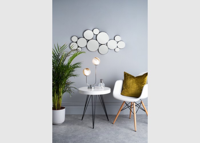 The Digby Rectangular Mirror consists of circular bevelled-edge mirror panels in an assortment of sizes nestled together to form a single rectangular decorative mirror. Position the mirror in your hallway or bedroom, or above a mantelpiece to add a sense of playfulness to your interior.