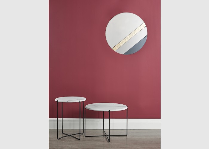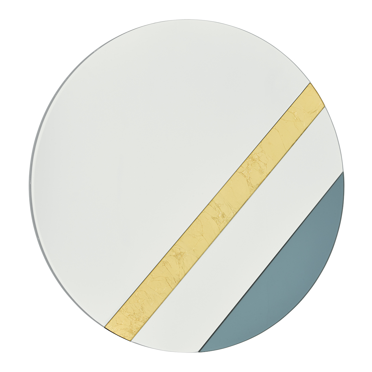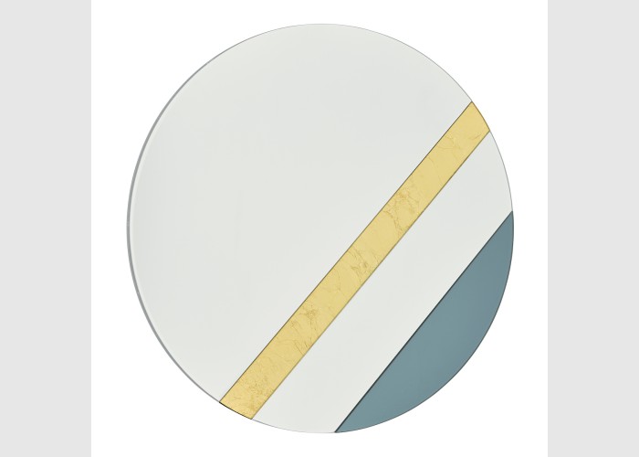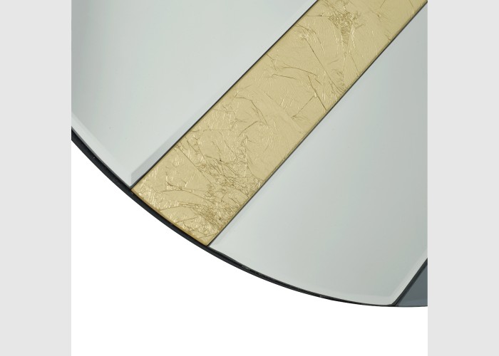 For a sophisticated look choose the Jelena Round Mirror, a contemporary round mirror with geometric bands of gold leaf and smoked glass set at an angle.