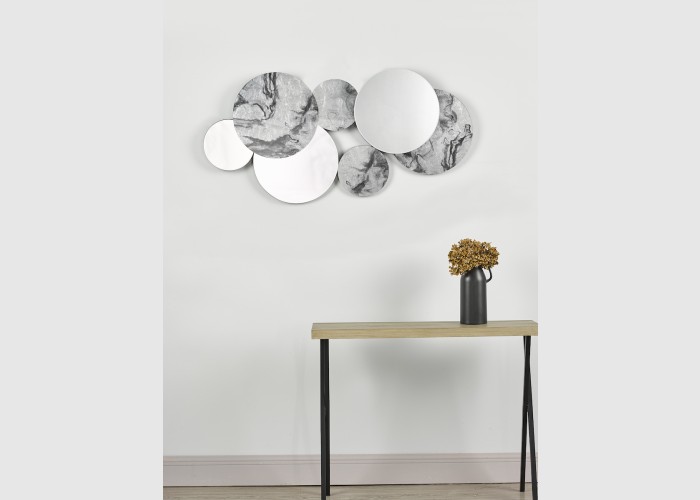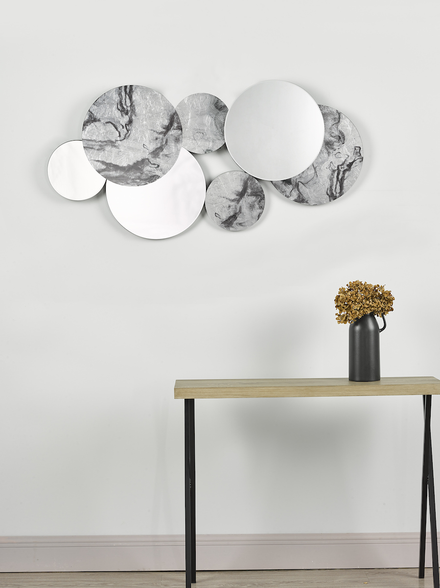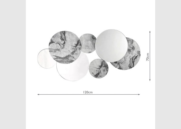 The gorgeous Meco Rectangular Mirror features a cluster of round mirrors with accents of marble effect over silver leaf.