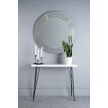 The Meora Round Mirror is a large contemporary round mirror featuring bevelled detailing that creates a tiered edged effect. Perfect for adding some subtle texture to any space.
