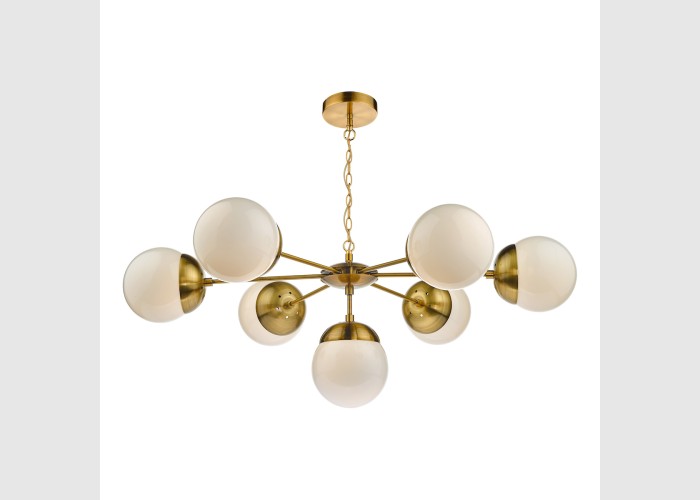 Bombazine 7 Light Pendant Natural Brass & White Opal Glass