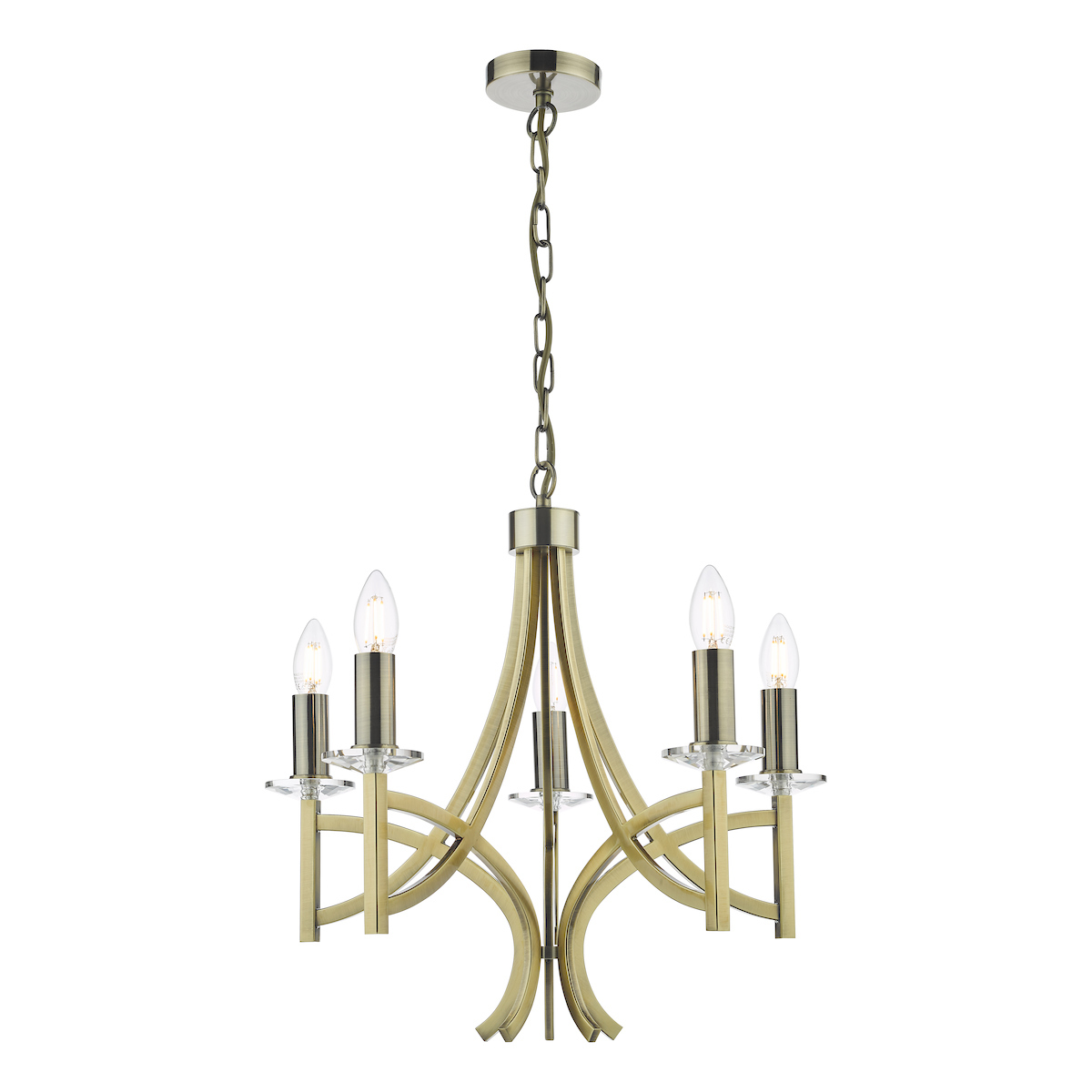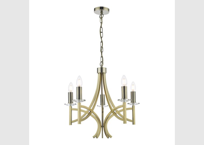 The Lyon 5 Light Antique Brass Pendant has eight faceted crystal bobeches sitting atop sweeping and intersecting arms to create this modern take on a classical chandelier. A bobeche is a collar originally intended to catch the drips of wax on a candlestick; here they add a touch of authenticity to our contemporary design.