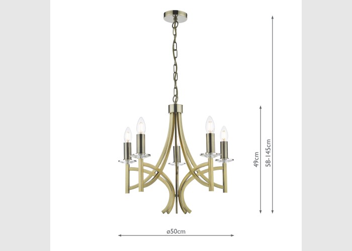 The light is also supplied with two sets of candle drips for use with or without shades (shades sold separately) and 1m of chain which is height adjustable on installation.