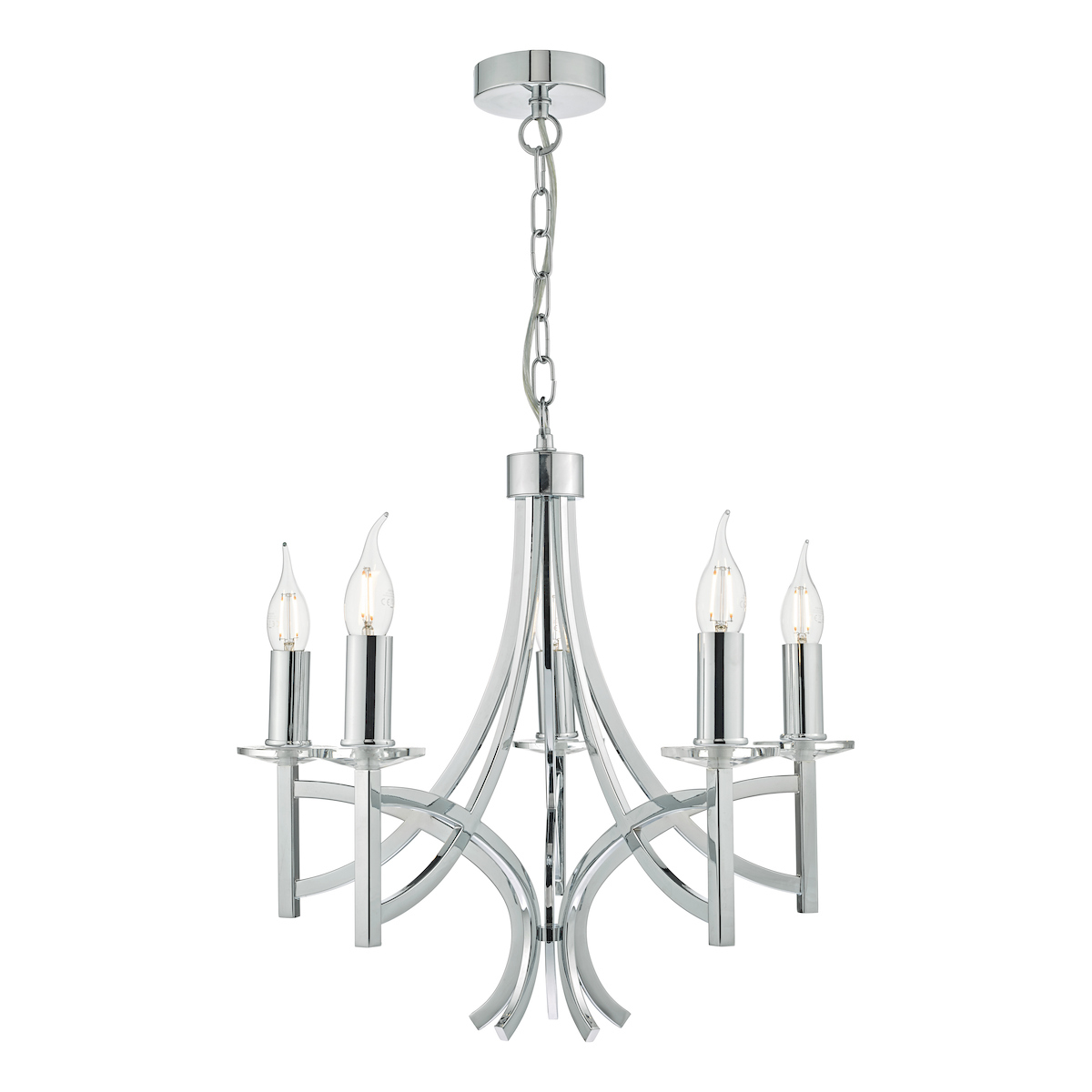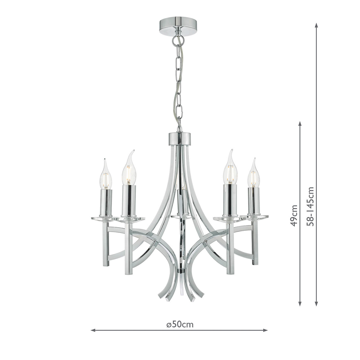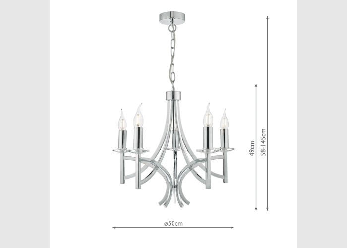 The light is also supplied with two sets of candle drips for use with or without shades (shades sold separately) and 90cm of chain which is height adjustable on installation.
