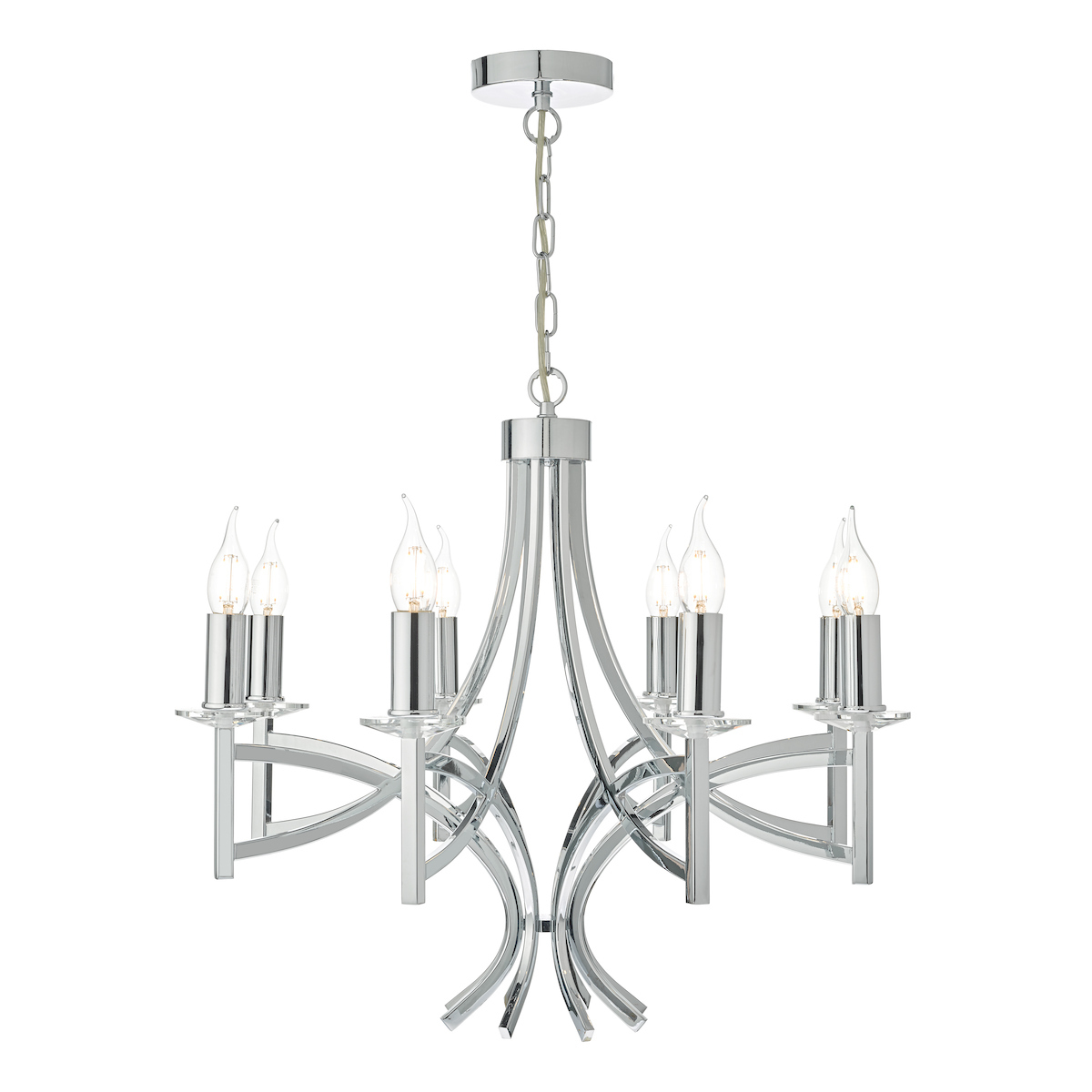 The light is also supplied with two sets of candle drips for use with or without shades (shades sold separately) and 1m of chain which is height adjustable on installation.