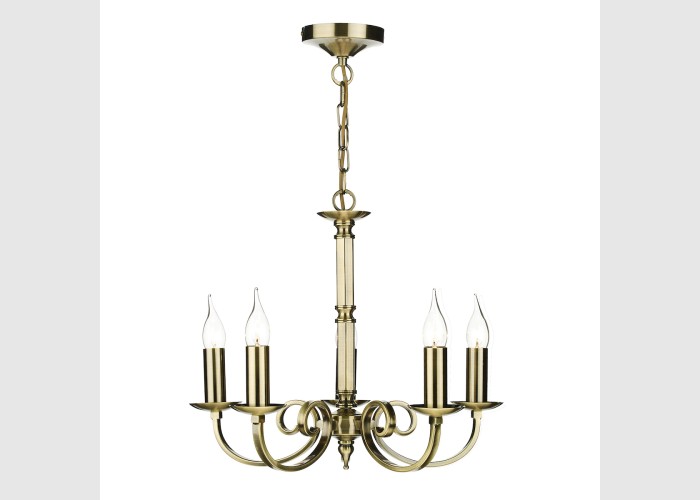 The Murray 5 Light Pendant is finished in antique brass.