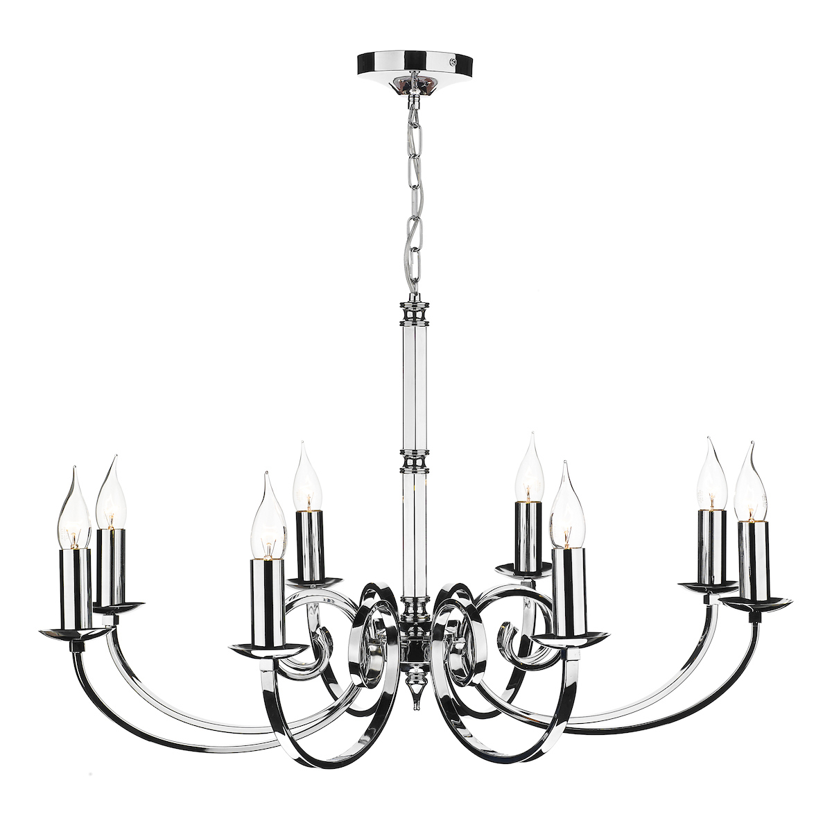 The Murray 8 Light Pendant is finished in polished chrome.