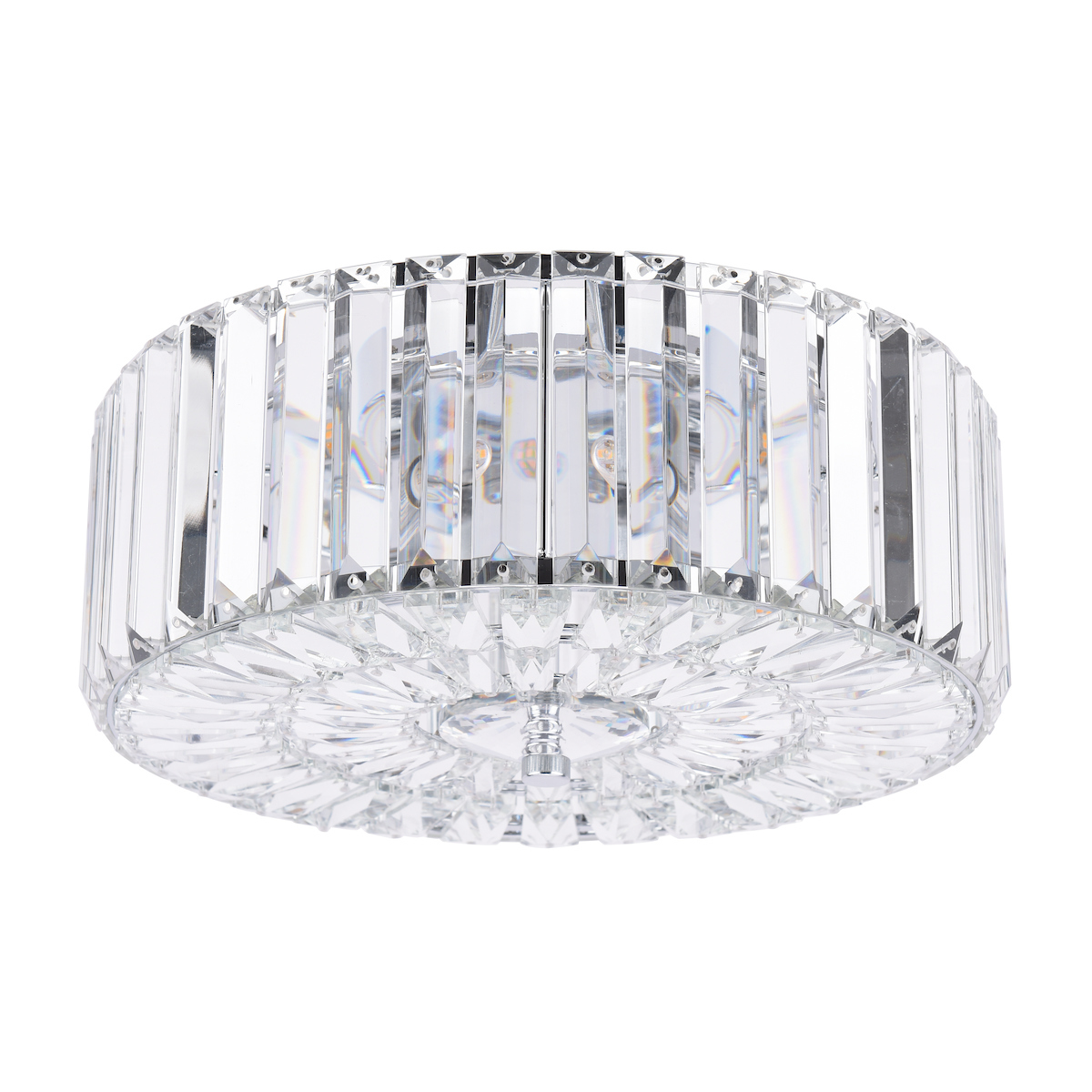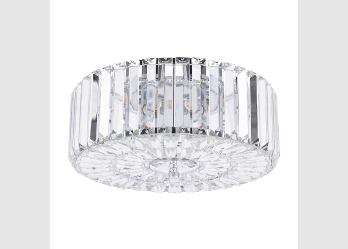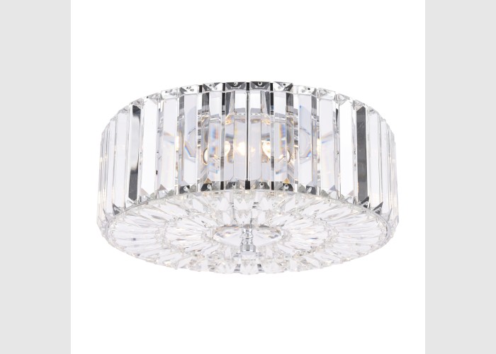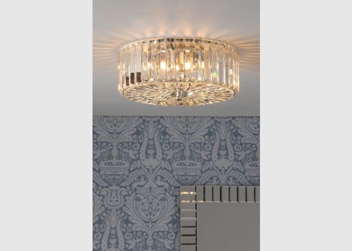 The glamorous Laura Ashley Fernhurst 3 Light ceiling light features beautiful bevelled 'coffin' style glass rods in a circular design, encasing 3 hidden bulbs.