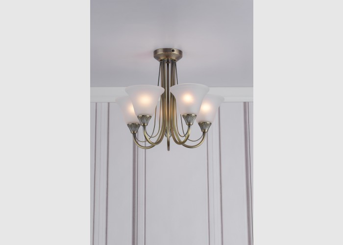 The Boston 5 Light Semi-Flush lamp has a traditional feel with flared opal glass shades and ribbed detailing.