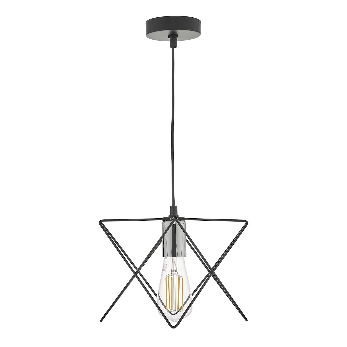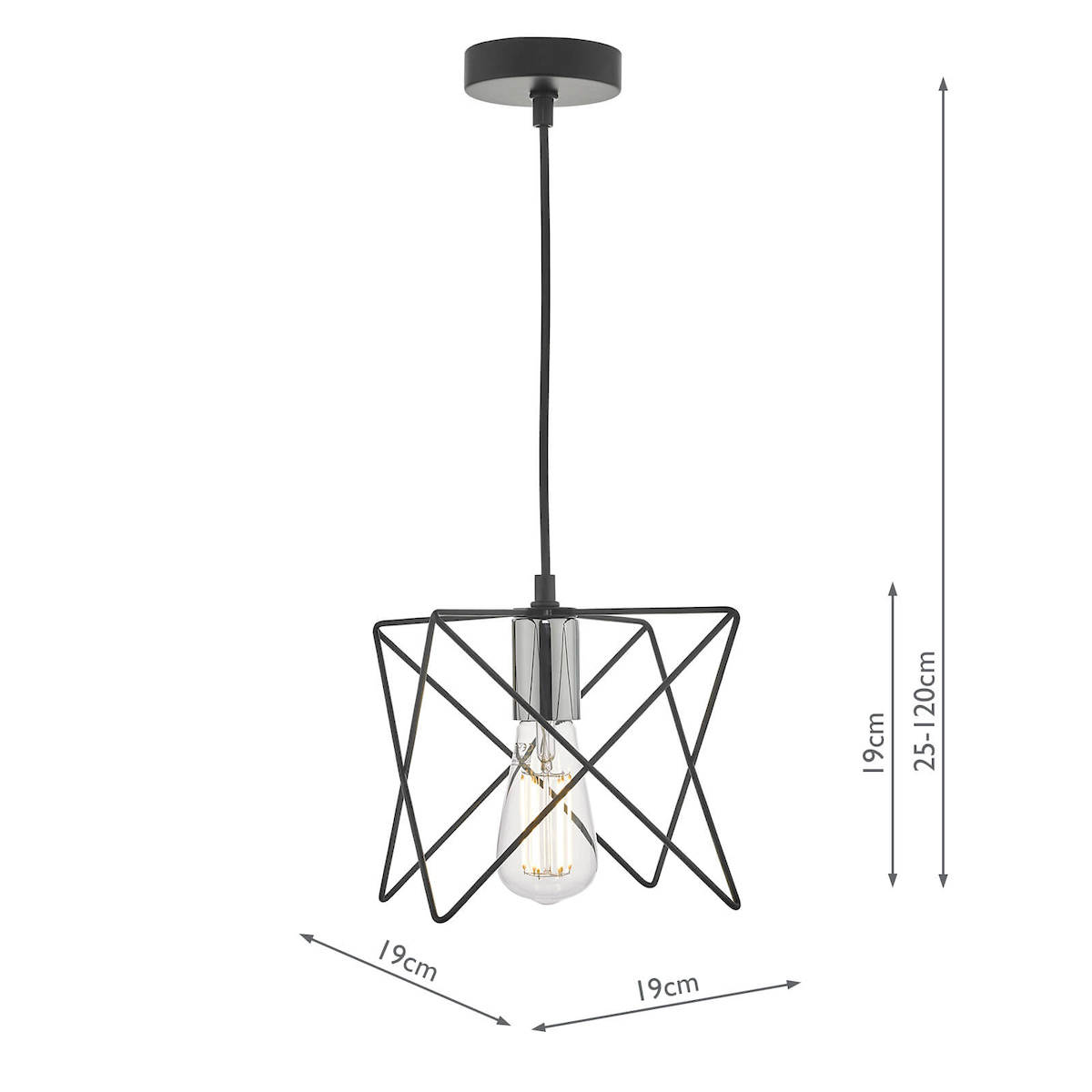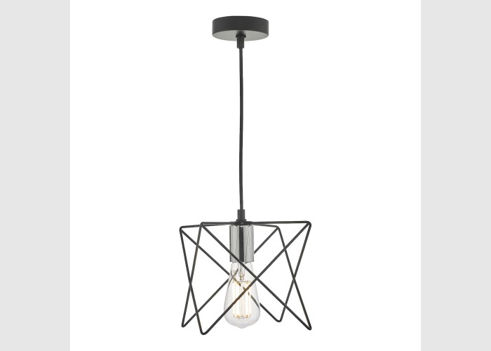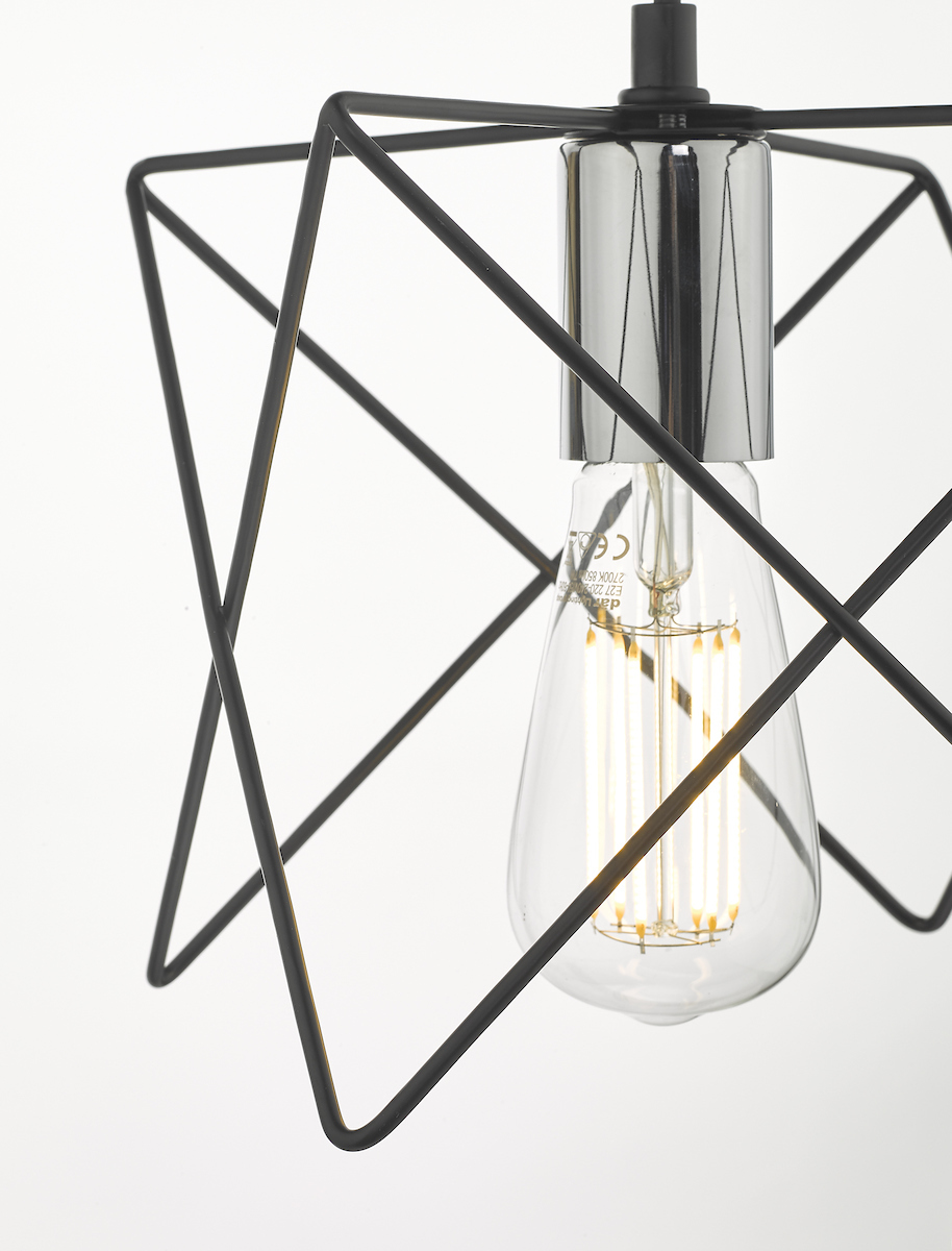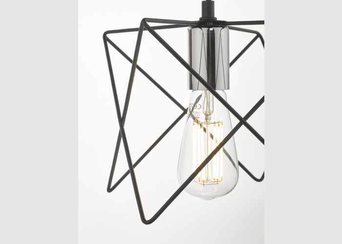 The Midi 1 Light Pendant is a caged style pendant in a matt black finish complete with polished chrome lamp holders.