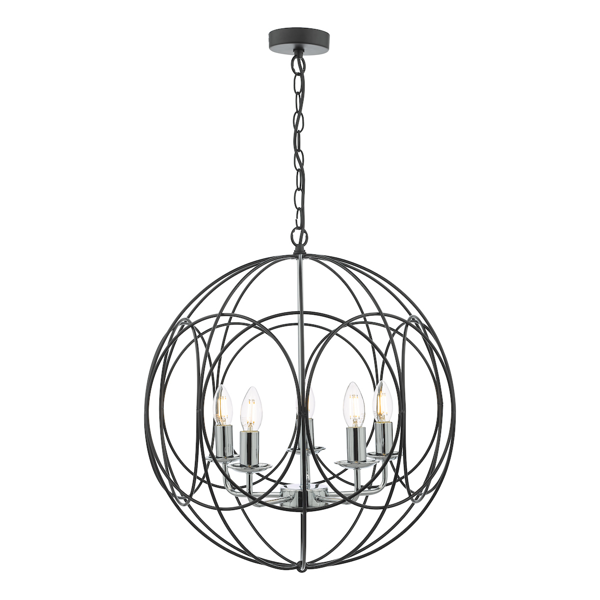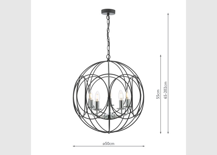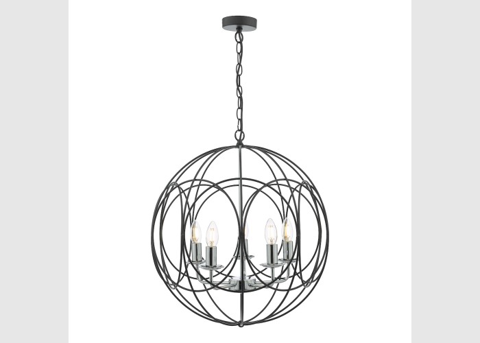 Phoenix 5 Light Pendant Matt Black With Polished Chrome Detail
