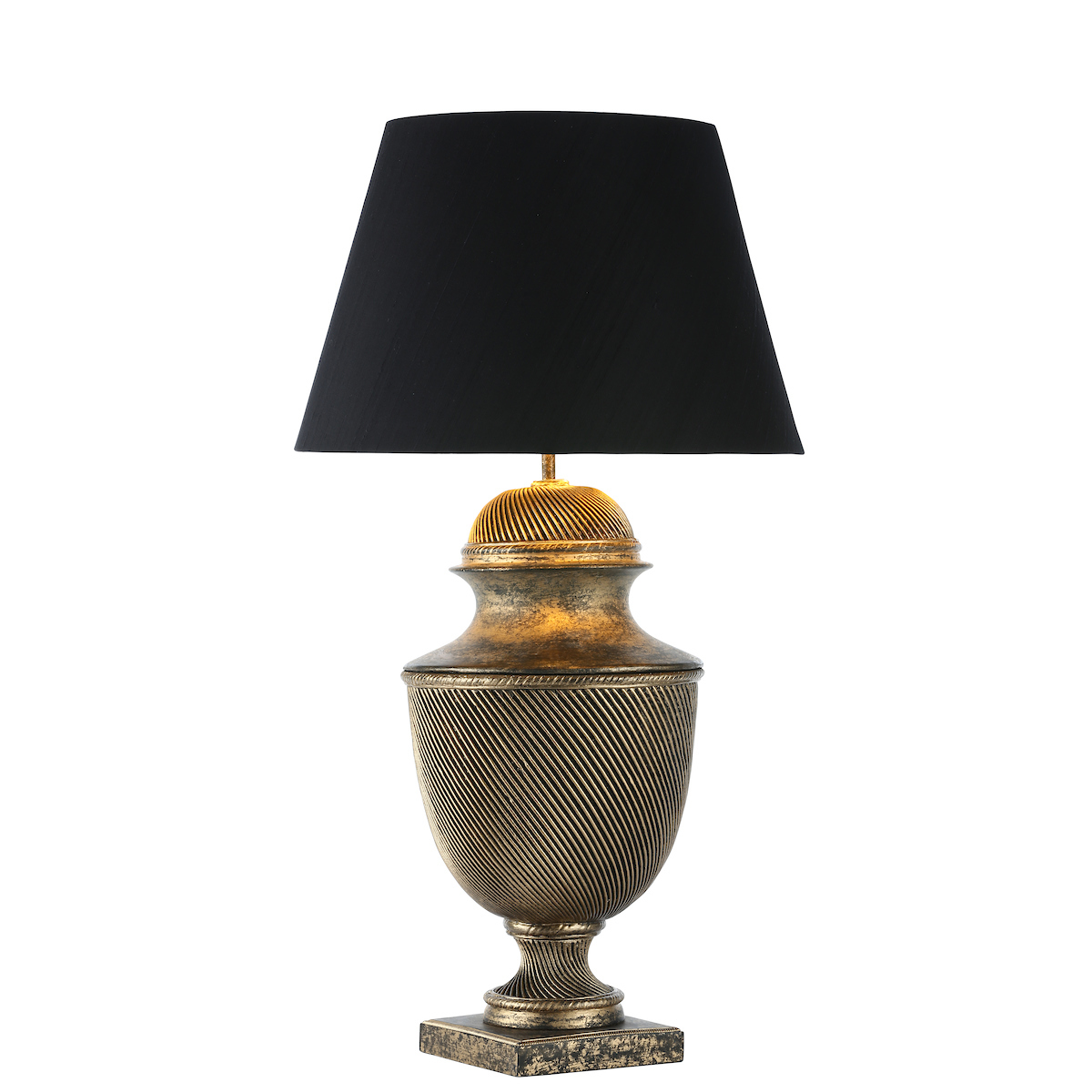 The David Hunt Lattice Table Lamp combines intricate latticework with the classic urn design. The result is a formidable table lamp with stately presence for any interior scheme. Supplied in hand finished black paintwork with gold highlighted accents.