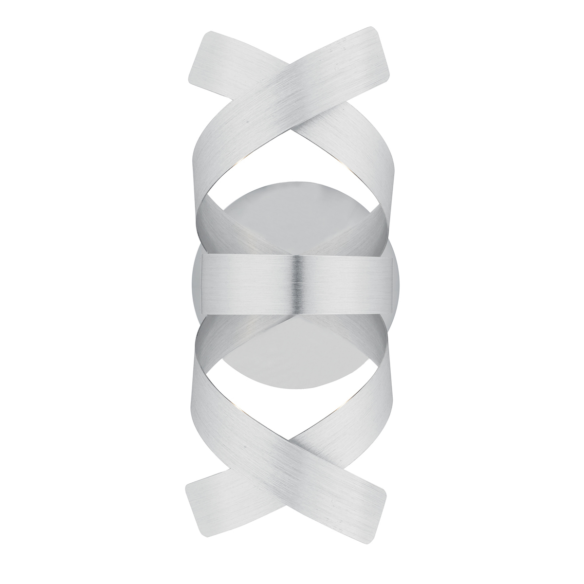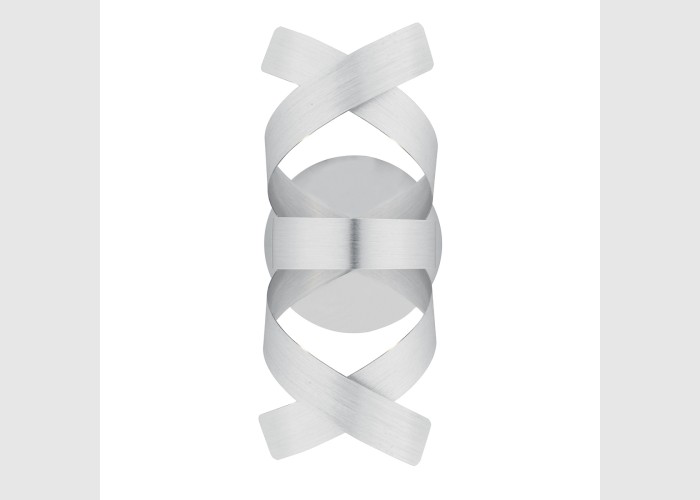 The Rawley 1 Light Wall bracket features twirling ribbons of brushed aluminium on brushed aluminium plate.