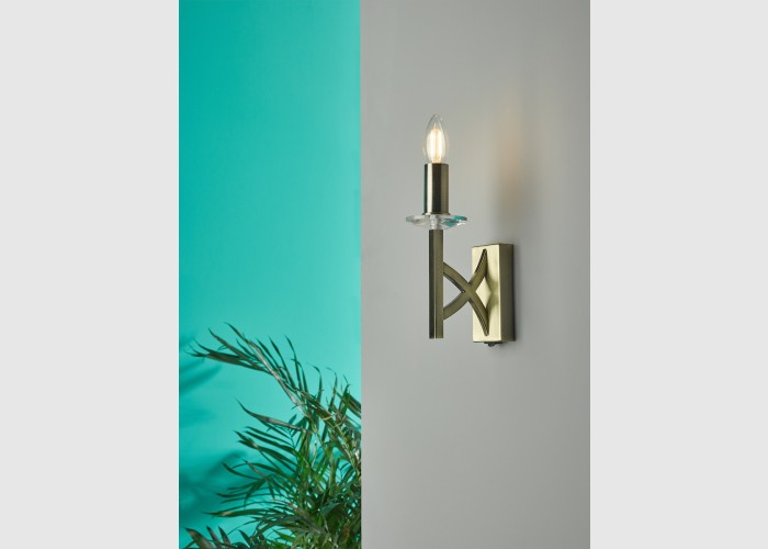 Lyon 1 Light Wall Light Antique Brass Crystal
