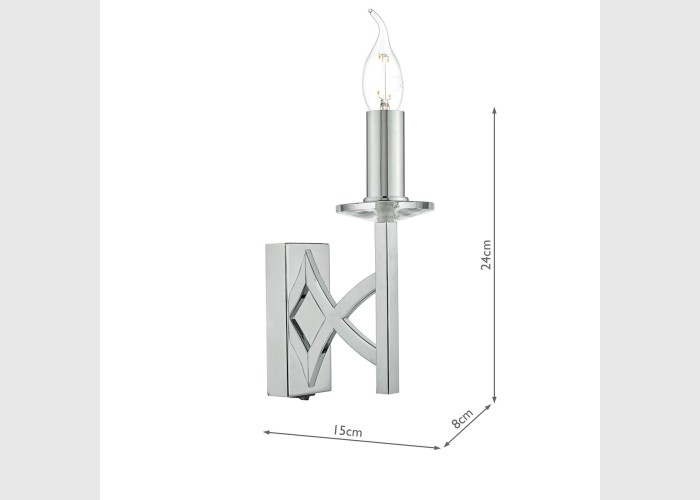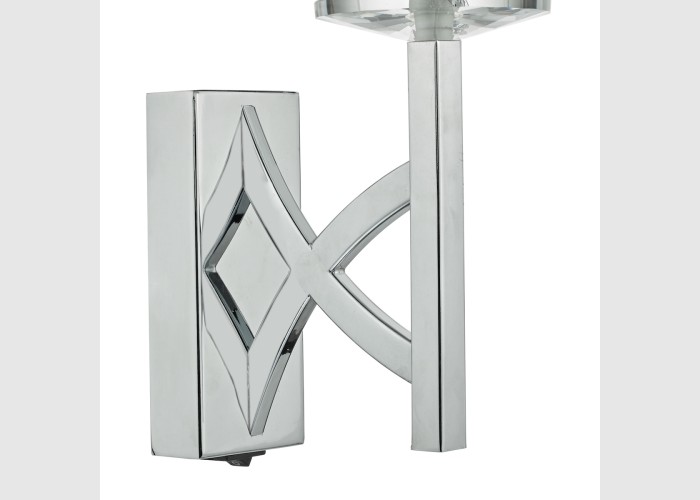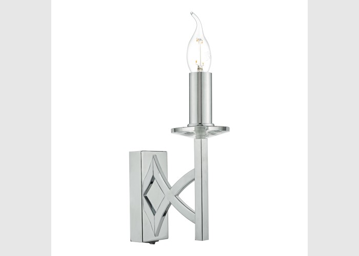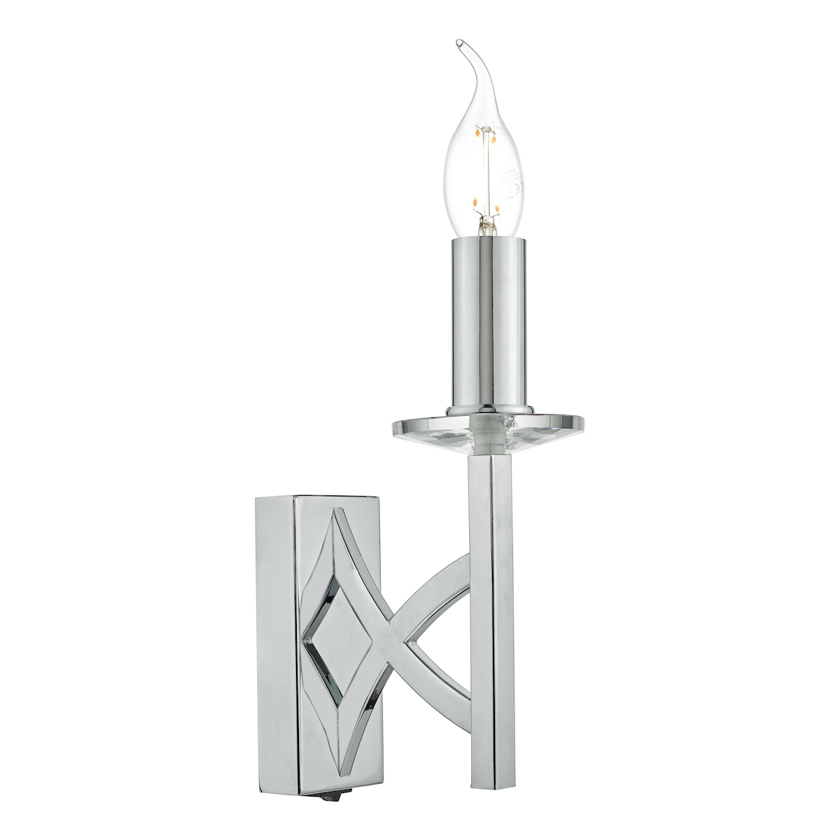 The Lyon Polished Chrome Wall Light has a faceted crystal bobeche sitting atop a sweeping and intersecting arm to create this modern take on a classical wall light. A bobeche is a collar originally intended to catch the drips of wax on a candlestick; here they add a touch of authenticity to our contemporary design.